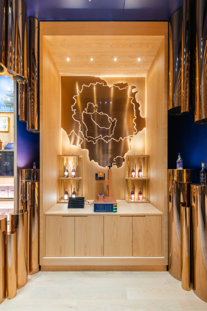 Création du concept l’Atelier Martell pour la Maison de Cognac Martell. Création des différentes expériences clients (personnalisation, remplissage personnalisé…) , création de l’espace, modélisation, mise en plan et suivi de fabrication. Première application du concept en Chine, à Shenzhen.