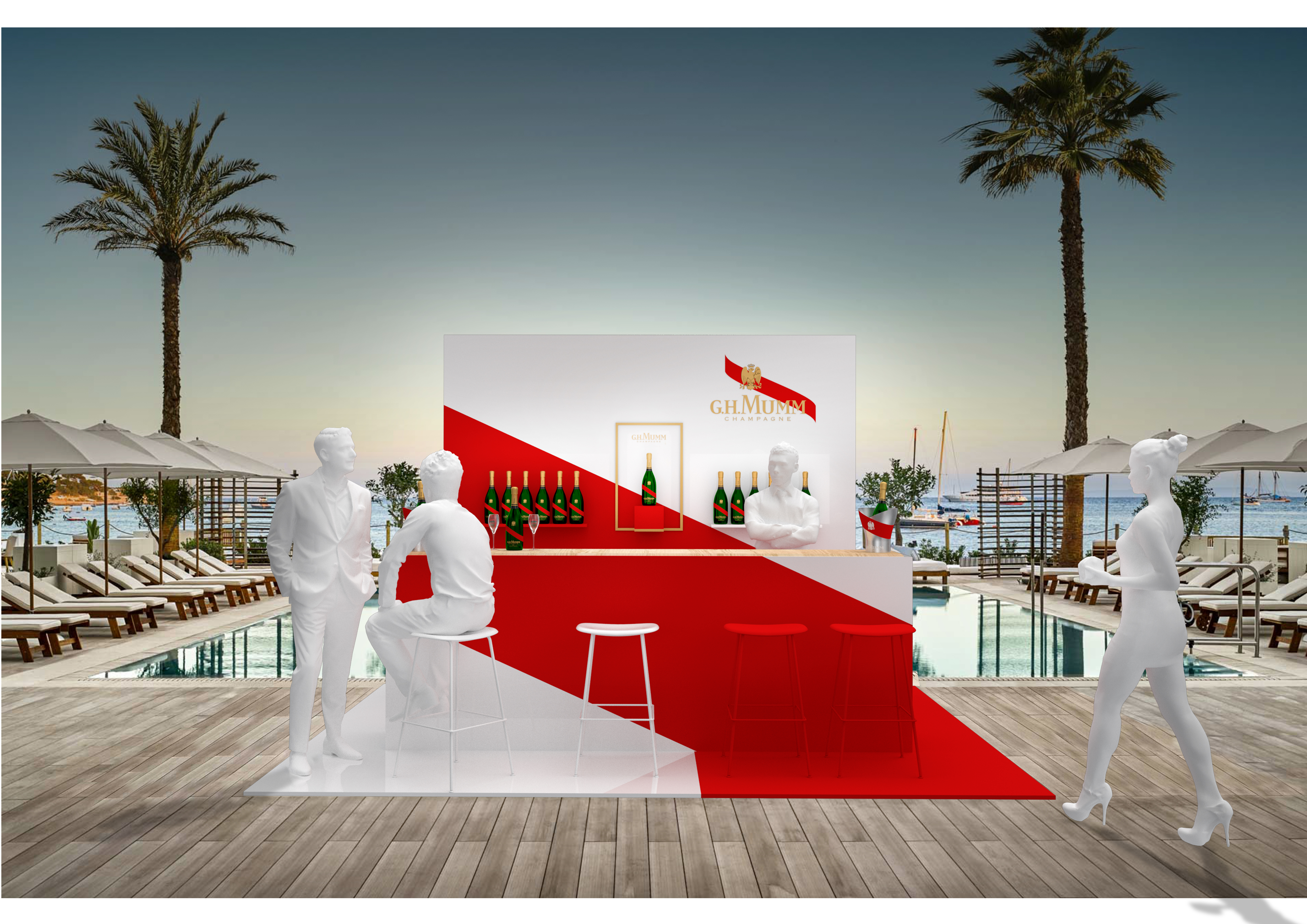 Création de vitrine et de pop up pour la marque de Champagne Mumm.